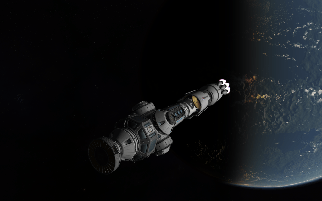 Discovery sails away from Kerbin – radio systems will allow for remote piloting, and monitoring of the crew!