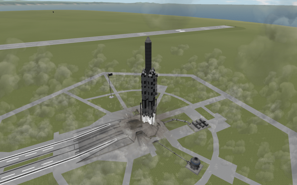 Jeb activates the three Magneto-Plasma-Dynamic thrusters and Discovery takes off!