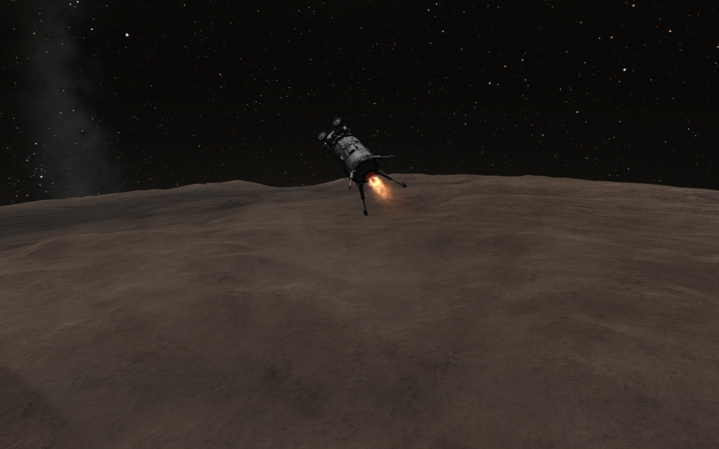 The aerospike engine fires, and the lander moves down to the surface!