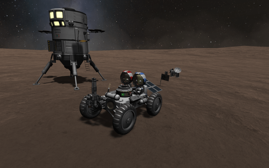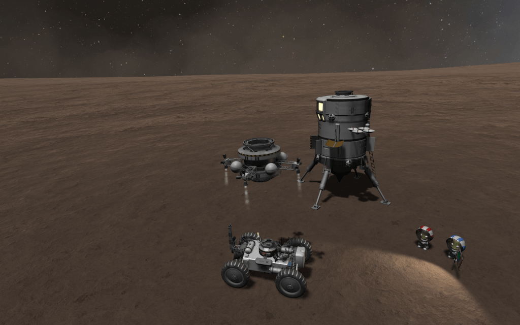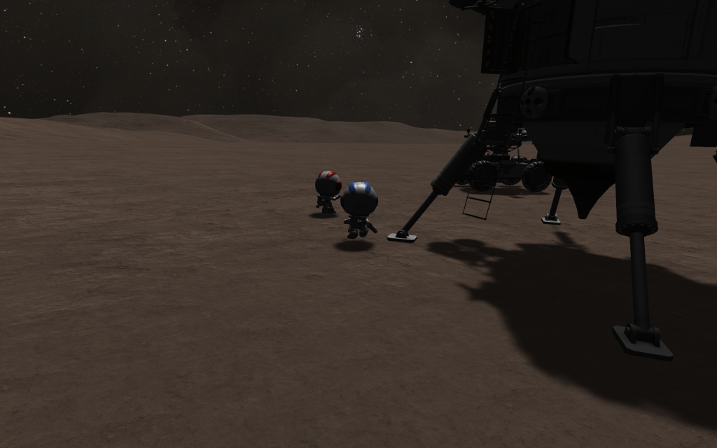 After a very long day exploring Moho (at least the 3km west of the landing site!) Mirphe and Samner return to the lander!