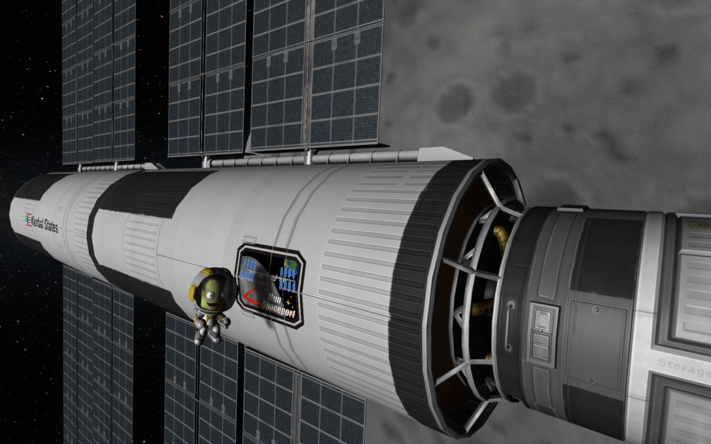 Mission Profile: Ongoing mission to Mun to provide crew habitat and refueling. Mun Spaceport is a repurposing of the old ‘Kerbin Spaceport’ – moved to Mun Orbit in Year 21!