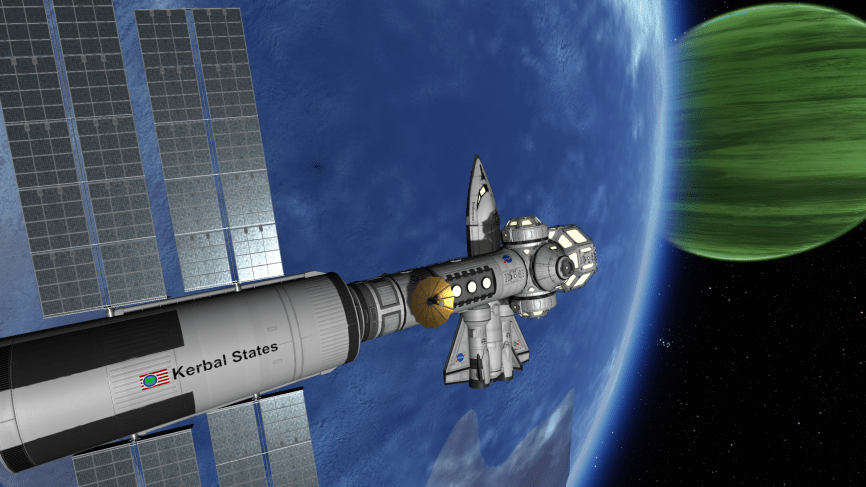 Mission Profile: Ongoing mission to Laythe, providing crew habitat and refueling. Home base of the X-10 Space Plane, the SSTO specially designed to explore Laythe!