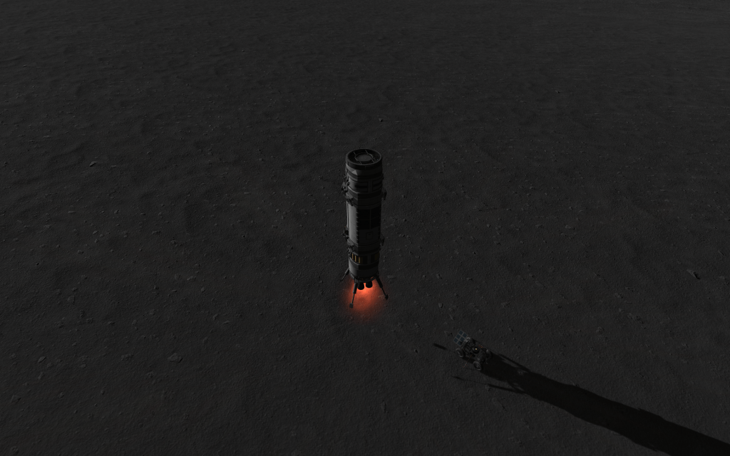 At the last second, the Command Module detaches from the descent vehicle, and the upper mounted RCS system (the same that’s used to deploy rovers in Aurora Missions) takes the Command Module to the surface of Mun!