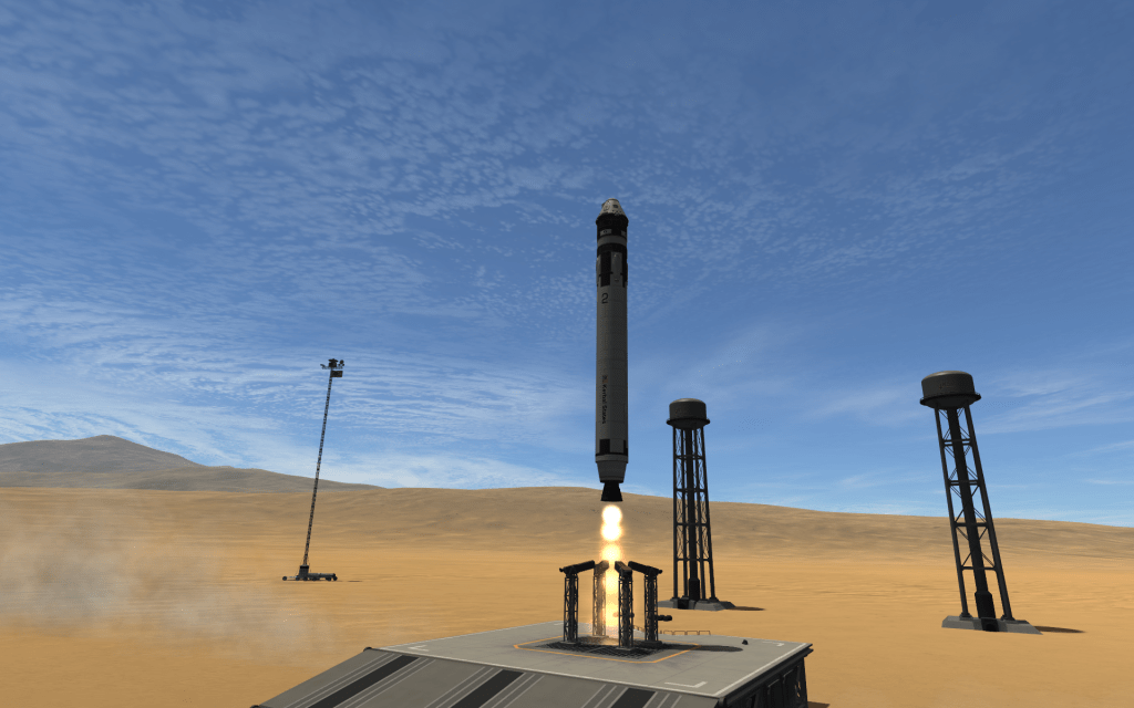 Crew Vehicle 2 blasts off from White Mesa, carrying Jeb, Robart, and Kerlorf! Robart and Kerlorf will be joining Val as the crew for DSV-4 Discovery’s journey to Laythe! Jeb will be taking over as station commander at Spacedock!