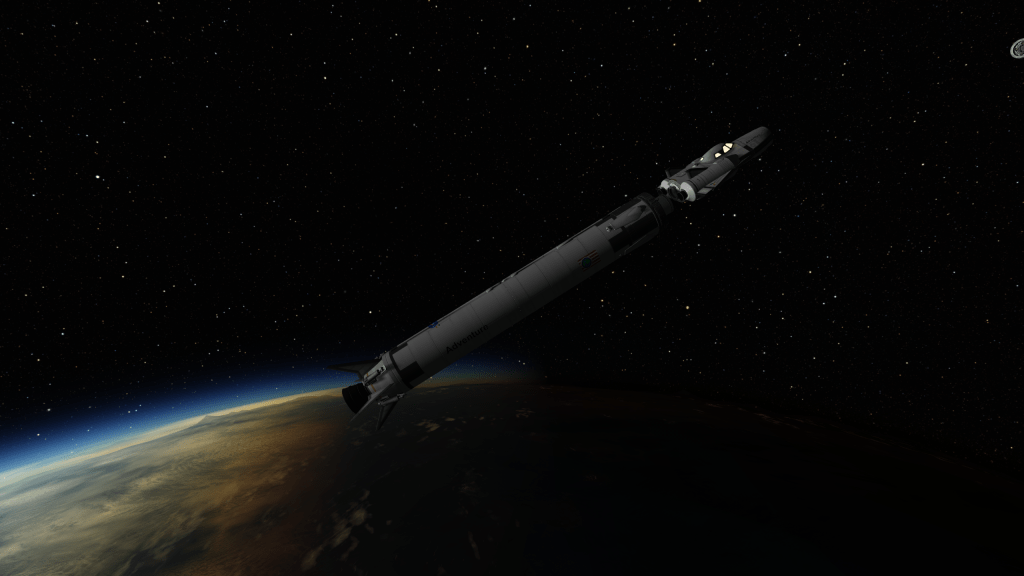 This time the launch goes much better than Harmony Station’s… keeping the insertion stage’s engine’s gimbals set lower appears to solve the problem (that and the station has been designed to be symmetrical!) Adventure will remain in orbit until KSEA signals that the Station is safely away!