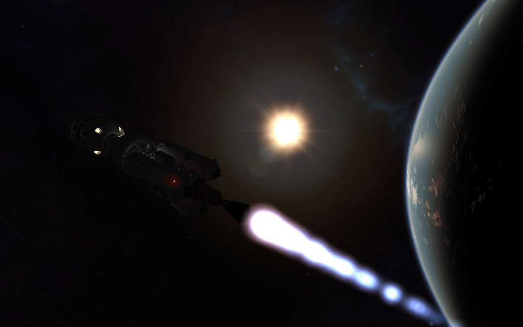 “This is the first time a crewed vessel.. or really any vessel, has returned ot Kerbin orbit from Jool! Fuel will be a little tight, but I’m sure we’ll make it to orbit!” -Mitster