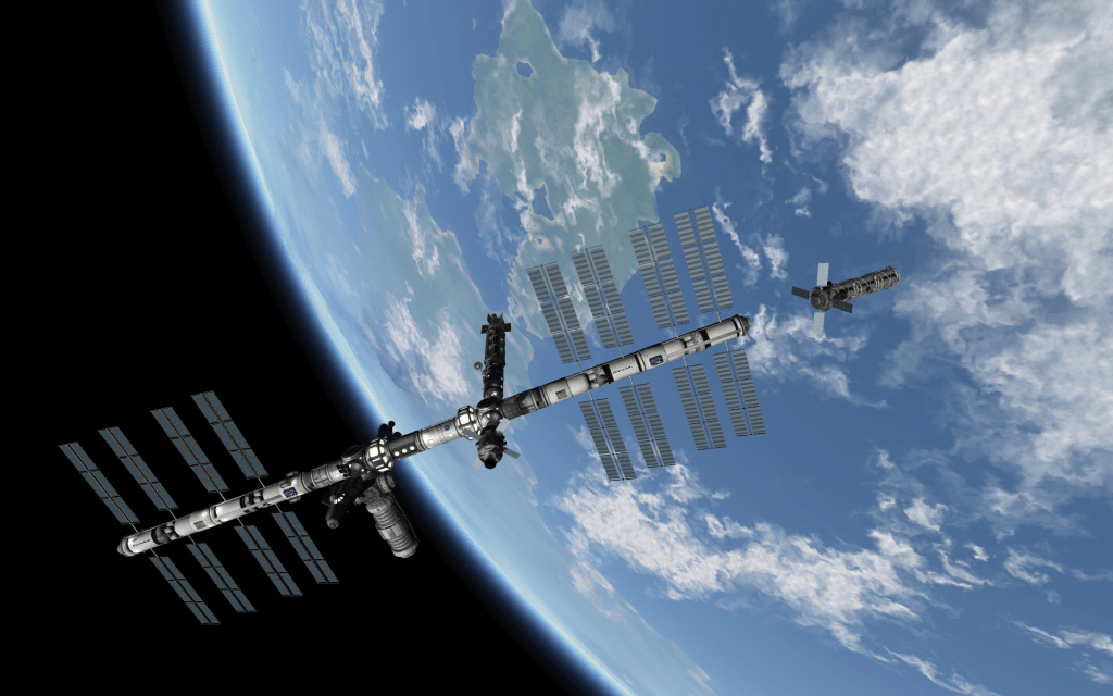 Edan pilots the Crew Shuttle closer and closer to the station! This isn’t the easiest task, as the craft actually pilots in reverse, as the docking bay is at the aft of the ship!