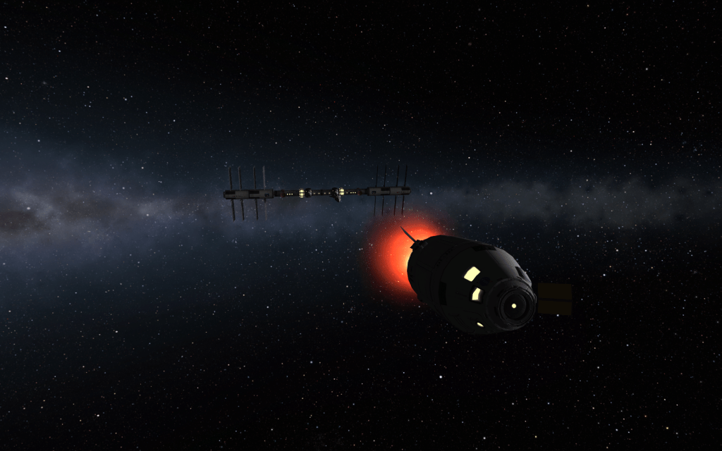 The ACV activates it’s engine and blasts away from the station – changing it’s inclination to match Explorer 6!