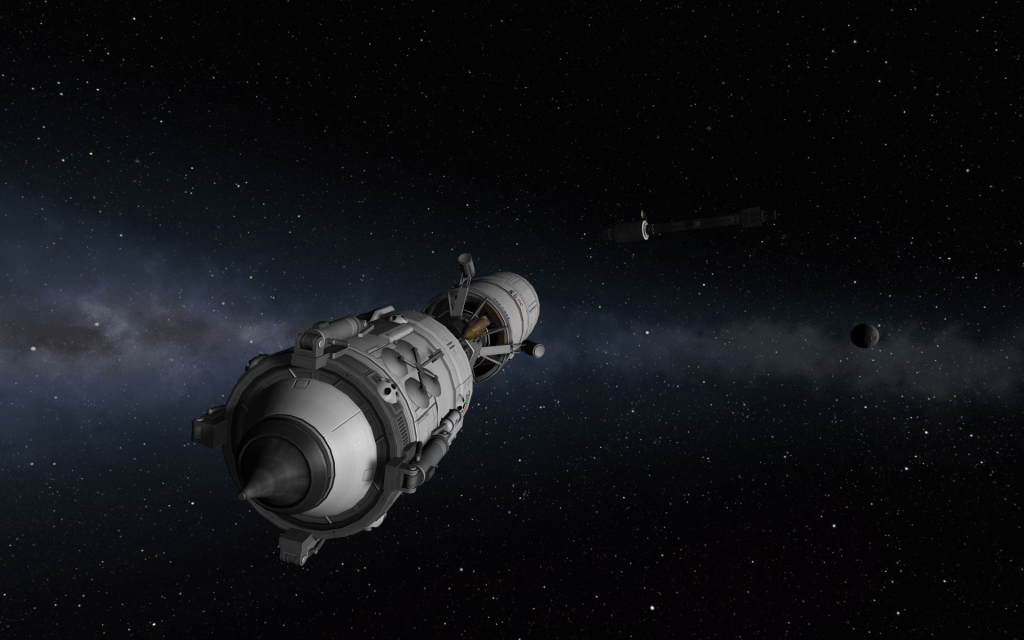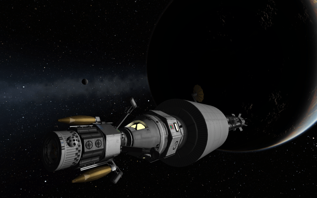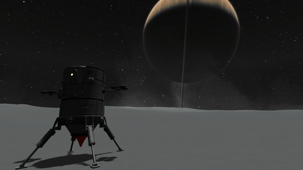 After weeks in orbit calibrating equipment and scouting out a new landing site, Mission Control gives the OK to land on Eeloo! Mitster and Kimmy board the lander and undock from Horizon’s payload bay!