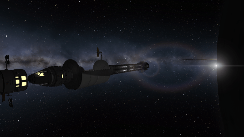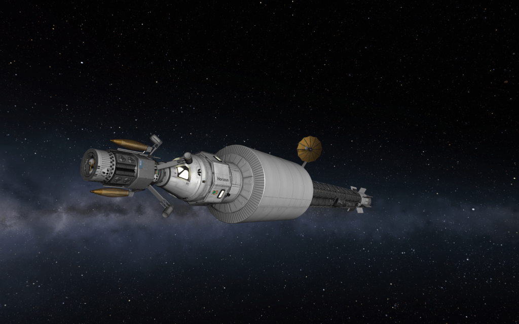 As the sun sets, Mitster climbs into the lander, detaches from Aurora 23, and moves closer to Horizon’s docking bay!
