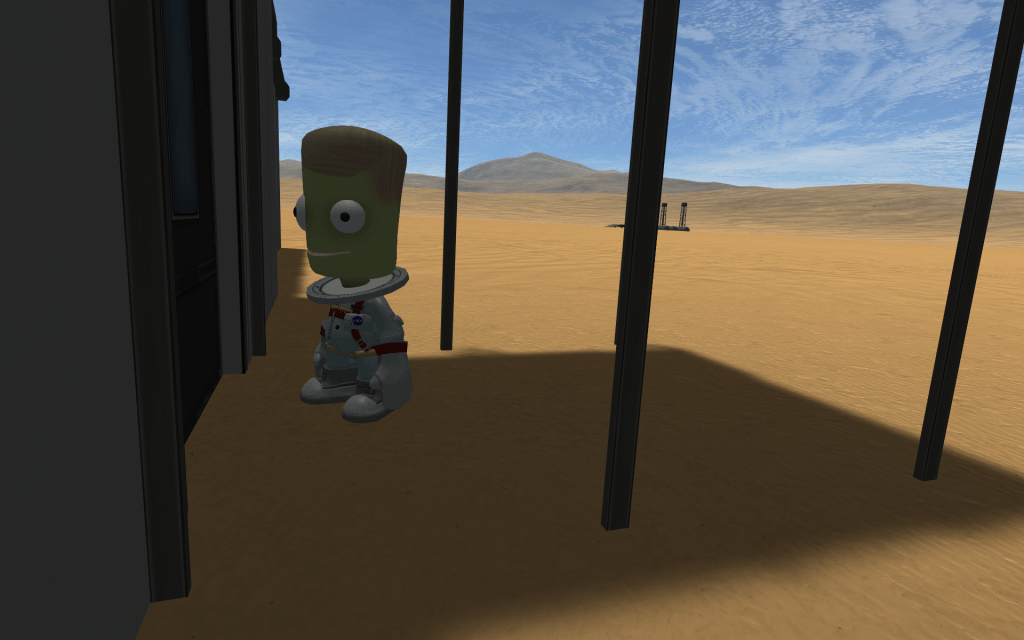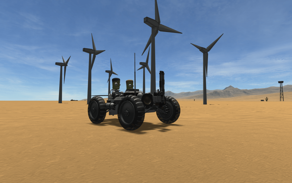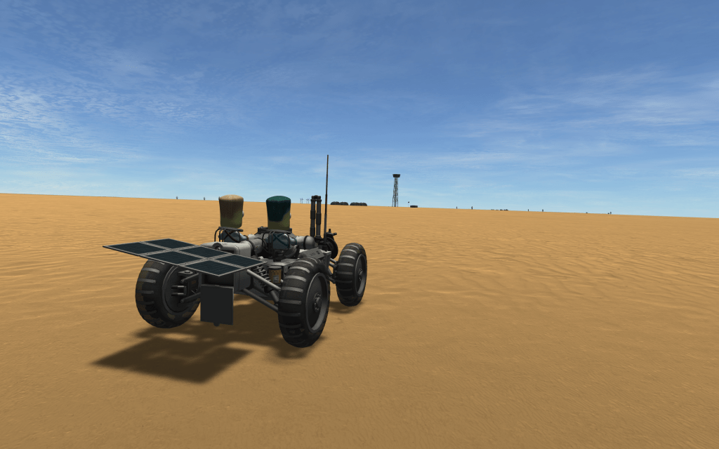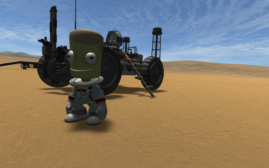 The two Kerbals drive for a minute until they spot something in the distance… a strange rock!