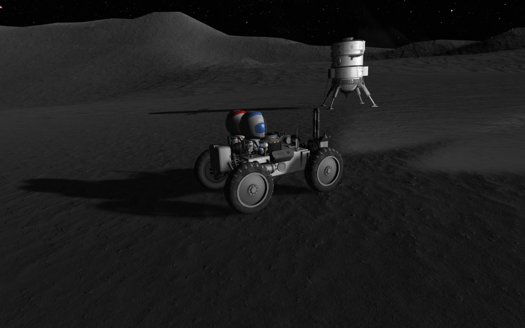 The rover has enough supplies to last several days on the surface. Hopefully by then the crew will find some of Mun’s precious water!