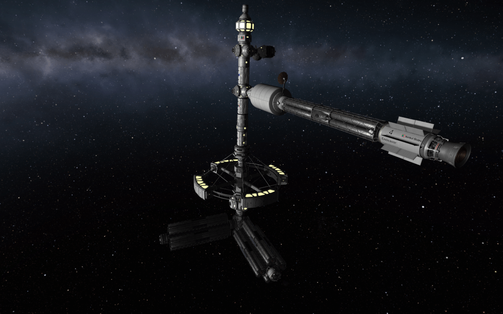 Kerbin Spacedock’s redesign now allows 4 of the refueling vehicles docked at the base of the station – and should provide more than enough fuel reserves for KSEA’s growing fleet of Deep Space Vehicles… including Discovery, which will return in just days!